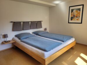 Ein Parkplatz befindet sich direkt beim Haus. Die Ferienwohnung ist mit bis zu 4 Personen belegbar und ist ausgestattet mit 2 separaten Schlafzimmern mit jeweils einem Doppelbett , sowie einer komplett ausgestatteten großzügigen Wohnküche, Bad mit Dusche, Badewanne und WC und einer Terrasse. Die Bettwäsche und Handtücher werden von uns gestellt.